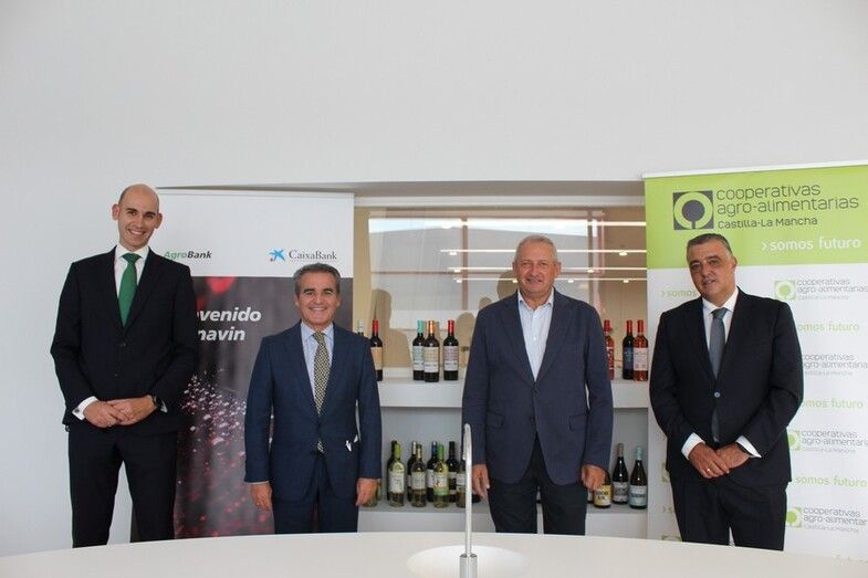 El presidente de Cooperativas Agro-alimentarias, Ángel Villafranca y el director territorial Centro de CaixaBank, Rafael Herrador, han firmado un convenio de colaboración a través del cual CaixaBank, a través del presupuesto descentralizado de la Fundación “la Caixa”, apoya los programas sociales de la entidad cooperativista destinados a fomentar el bienestar de las personas más vulnerables de la sociedad castellano-manchega en un año tan especial como el presente, castigado por la pandemia. En el acto de firma han estado también presentes el director de Cooperativas Agro-alimentarias en Castilla-La Mancha, Juan Miguel del Real; el director comercial de CaixaBank en la región, Jordi Portillo, y el director de AgroBank en Castilla -La Mancha, Pedro Antonio Martínez Atalaya.