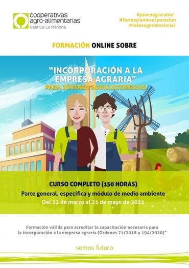 Con el objetivo de dotar a los jóvenes agricultores de las herramientas necesarias para gestionar su explotación agraria desde un punto de vista práctico y empresarial, Cooperativas Agro-alimentarias Castilla-La Mancha está desarrollando el programa “Incorporación a la Empresa Agraria”, que esta semana ha comenzado su segunda edición del año en formato virtual.