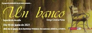 A las 20h. y a las 21h. en el Atrio de la Iglesia de la Santísima Trinidad, espectáculo de calle “UN BANCO” del Aula de Teatro del Patronato Municipal de Cultura. Dirigido por Cristina Perea Molina y realizado por el alumnado del grupo de adultos (Más información y programa ver QR)