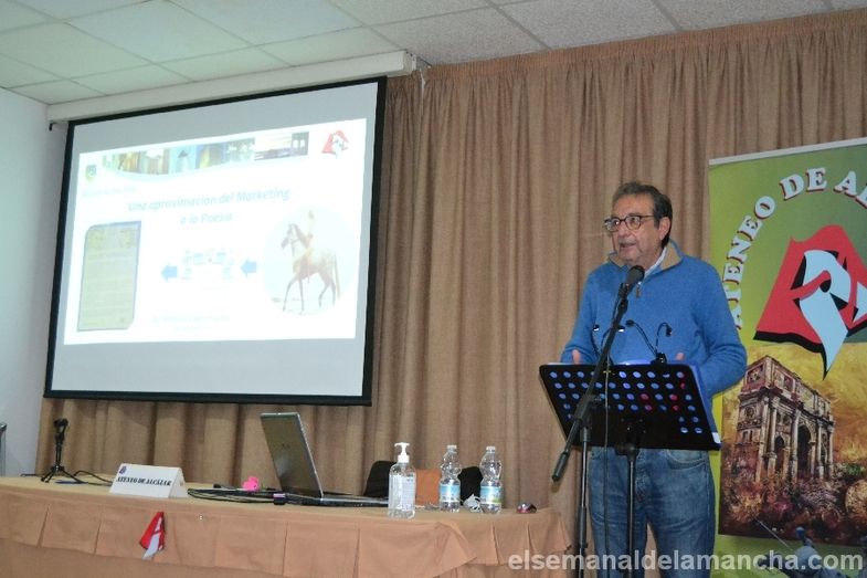 Desplazado desde su lugar de residencia en el Puerto de Santa María, el alcazareño Antonio Leal, experto en Comunicación, Marketing y Publicidad, colaborador de El Semanal de La Mancha y autor de Encuentros en La Castelar, pudo por fin ofrecer el viernes por la tarde, en el Ateneo de Alcázar de San Juan, la conferencia que desde antes de la pandemia tenía programada, titulada "Una aproximación del Marketing a la Poesía". Un tema complejo abordado desde la magistralidad y experiencia que dan media vida en el mundo de la empresa como alto ejecutivo de una famosa multinacional (director de Marketing) y otra media vida como docente en las Universidades de Cádiz y Málaga (Leal es doctor en Ciencias Económicas y Empresariales, licenciado en Marketing y Publicidad y doctor en Ciencias de la Información).