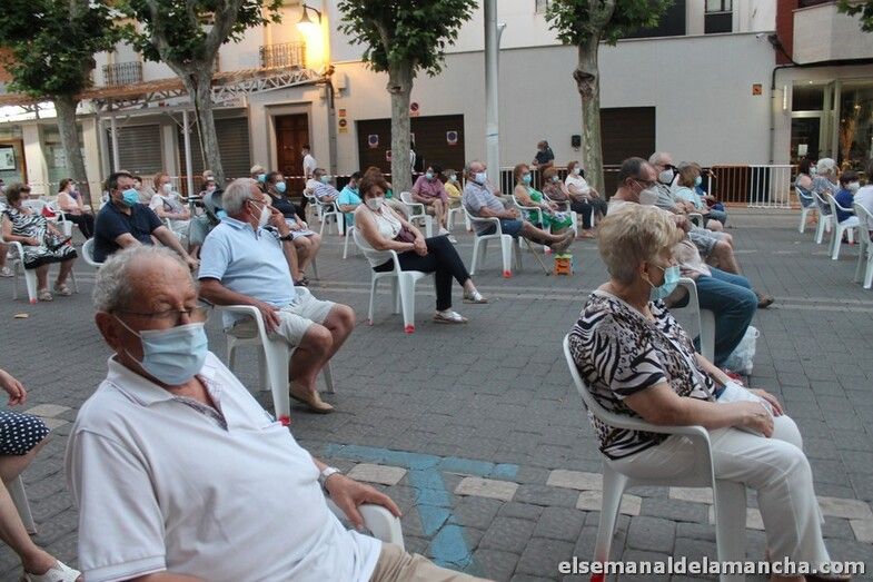 El primer escenario ha tenido como protagonista la música de la Asociación Banda de Música, celebrado con todas las medidas de seguridad frente a la Covid19, ya que se ha acotado el espacio y a la entrada se ha tomado la temperatura y se ha dado hidrogel para las manos. El aforo se ha limitado al 35% con unas 180 personas, tal como ha explicado el concejal de Cultura, Mariano Cuartero.