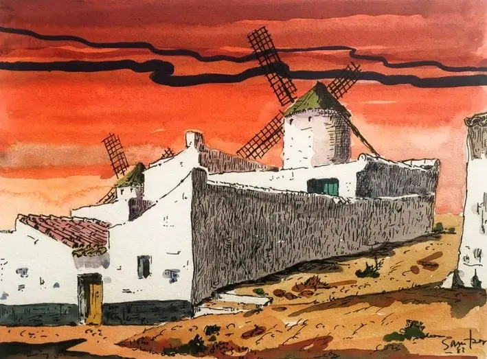 La mayoría de las obras que se muestran serán exhibidas por primera vez al público donde el autor nos muestra desde paisajes urbanos de diferentes localidades manchegas hasta los típicos paisajes de nuestra tierra con los molinos manchegos como protagonistas y a los que Don Quijote inmortalizo en la obra más importante de la literatura española. Unos paisajes, tanto los urbanos como los naturales, que han cambiado demasiado desde que José Luis lo pintase en el siglo pasado hasta nuestros días. Se puede decir que Samper fue un cronista de su época en la que utilizó sus pinceles para dar fe de una realidad difícilmente reconocible en los actuales días. Diferentes etapas, diferentes gamas de colores, diferentes enfoques, bajo una misma técnica, la acuarela, en la que es una esplendida ocasión para ver obra inédita del pintor manchego que también destacó como un gran acuarelista y de la que el escritor y poeta Valentín Arteaga definía así “José Luis Samper no pinta el paisanaje porque Antonio López Torres, Antonito López García, etc., tampoco lo hacen. El manchego lo que hace es pintarse así mismo en ese árbol escueto, en ese mutismo imperturbado de una calle quebrada en la siesta, en esos cielos derramados en la lejanía del ocre”