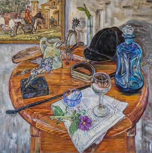 A veces he comparado sus cuadros con el torreón repleto de objetos adquiridos codiciosamente en El Rastro por el curioso escritor Ramón Gómez de la Serna. Ambos, Esperanza y él, compartían la pasión por los objetos que condensan significados y se prestan a un protagonismo especial, según su posición o colocación. La conjunción de algunos de ellos puede producir chispas emocionales. Pintura ramoniana, solanesca, la de Esperanza Huertas.