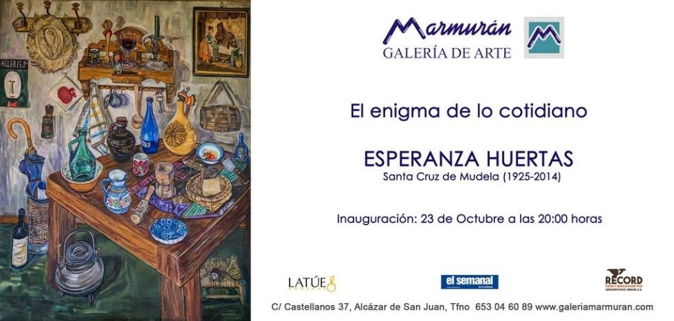 Hasta el próximo 4 de diciembre sem puede visitar, en la Galería de Arte Marmurán, calle Castellanos, 37 de Alcázar de San Juan, la exposición de Esperanza Huertas (Santa Cruz de Mudela 1925 - Madrid 2014), por edad, la primera pintora consagrada de la provincia de Ciudad Real del siglo pasado.