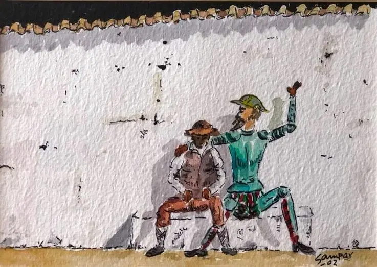 José Luis Samper hijo predilecto de la localidad manchega de Alcázar de San Juan nos presenta un Quijote en clave satírica con cierto humor manchego en contrate con la sobriedad del realismo que definen su pintura a lo largo de los mas de 50 años de trayectoria artística. Un total de 40 obras cuya mayor parte son acuarelas y en las que el artista presenta las aventuras de nuestro mas celebre embajador manchego y su fiel escudero en sus mas importantes aventuras a lo largo de los dos partes de tan celebre obra literaria, y lo hace con un toque juvenil en la mayor parte de las ocasiones y a veces con la seriedad que requiere el momento a plasmar, como la muerte de Don Quijote o la vuelta a su hogar tras la derrota tras la batalla con el Caballero de la Blanca Luna. La exposición aparte del valor artístico de la pincelada del artista manchego, tiene un carácter didáctico y pedagógico ya que cada obra va acompañada de su correspondiente texto que para ubicar al espectador en el momento y capitulo exacto al que Samper nos quiere llevar.