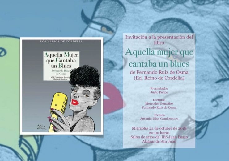 Fernando Ruiz de Osma, profesor en Tomelloso y vecino de Alcázar de San Juan, presentará este miércoles, 24 de octubre, su libro de poemas «Aquella mujer que cantaba un Blues”, Premio de Poesía «Eladio Cabañero» 2018, que otorga cada año el Ayuntamiento de Tomelloso en la Fiesta de las Letras.