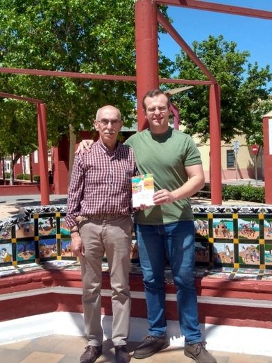 En la fotografía, el autor Jorge Jesús García con Enrique Lubián, miembro de la AECC, de Alcázar, en la biblioteca cervantina del parque Cervantes recibiendo un ejemplar de este libro para la asociación.