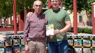 En la fotografía, el autor Jorge Jesús García con Enrique Lubián, miembro de la AECC, de Alcázar, en la biblioteca cervantina del parque Cervantes recibiendo un ejemplar de este libro para la asociación.