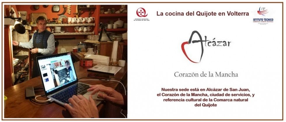 El sábado 20 de marzo tuvo lugar la actividad denominada «Don Quijote en Volterra» consistente en una conexión mediante videoconferencia en la que socios de la Cervantina de Alcázar de San Juan explicaron a los estudiantes italianos la geografía manchega del Quijote y les enseñaron la elaboración de diferentes platos de la cocina del siglo XVII.