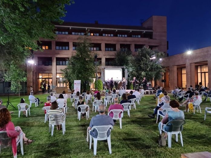 El jardín y la terraza del Hotel Intur se llenaron el pasado sábado por la noche de público, con motivo del concierto benéfico de los Escenarios para el Reencuentro ofrecido por Ibertcámara para Cruz Roja. Unas 200 personas se dieron cita en el referido hotel de Alcázar de San Juan para disfrutar de un concierto que también pudieron ver muchos ciudadanos desde casa, pues fue retransmitido en directo por Mancha Centro Televisión.