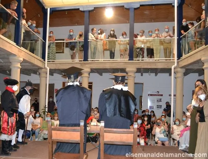 Con aforo completo (teniendo en cuenta la reducción correspondiente por la pandemia) y con las expectativas más que cumplidas, el grupo de teatro del Ateneo de Alcázar representó ayer en el Museo Municipal la obra “El juez de los divorcios”, una comedia publicada en 1615 y escrita por nuestro ilustre Miguel de Cervantes, durante el Barroco, que aparece en la colección de ocho comedias y ocho entremeses nunca representados en vida del escritor.