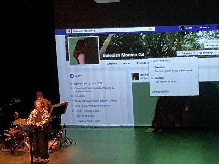 Se trata de una obra que mezcla música con tecnología, realidad virtual y electrónica, “donde las situaciones que se presentan se van resolviendo desde diferentes puntos de vista; y en la que el espectador experimenta sensaciones únicas a partir de elementos que le son familiares, perfiles de redes sociales, lenguaje tecnológicos, música…”. Además, como novedad para Alcázar, el espectáculo incluye una instalación experimental con sensores que reaccionan ante los movimientos de los espectadores para que la gente pueda entender también este proyecto”.