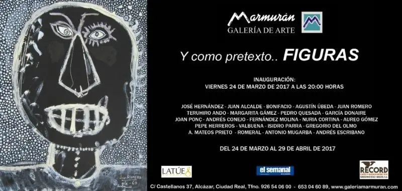 La muestra dedicada a cabezas y figuras, despliega un amplio abanico de estilos y tendencias. Nombres consagrados como Juan Alcalde, Joan Ponç Juan Romero, Agustín Úbeda, José Hernández, García Donaire, Bonifacio, Andrés Conejo, Gregorio del Olmo, los más cercanos pero igual de interesantes, Pepe Herreros, Isidro Parra, Fernández Molina, Áureo Gómez, Nuria Cortina, Francisco Valbuena, Andrés Escribano, Antonio Mugarba y algunos pintores que exponen en nuestra galería, por ejemplo, Teruhiro Ando, Romeral, Pedro Quesada, Antonio Mateos Prieto, Margarita Gámez.