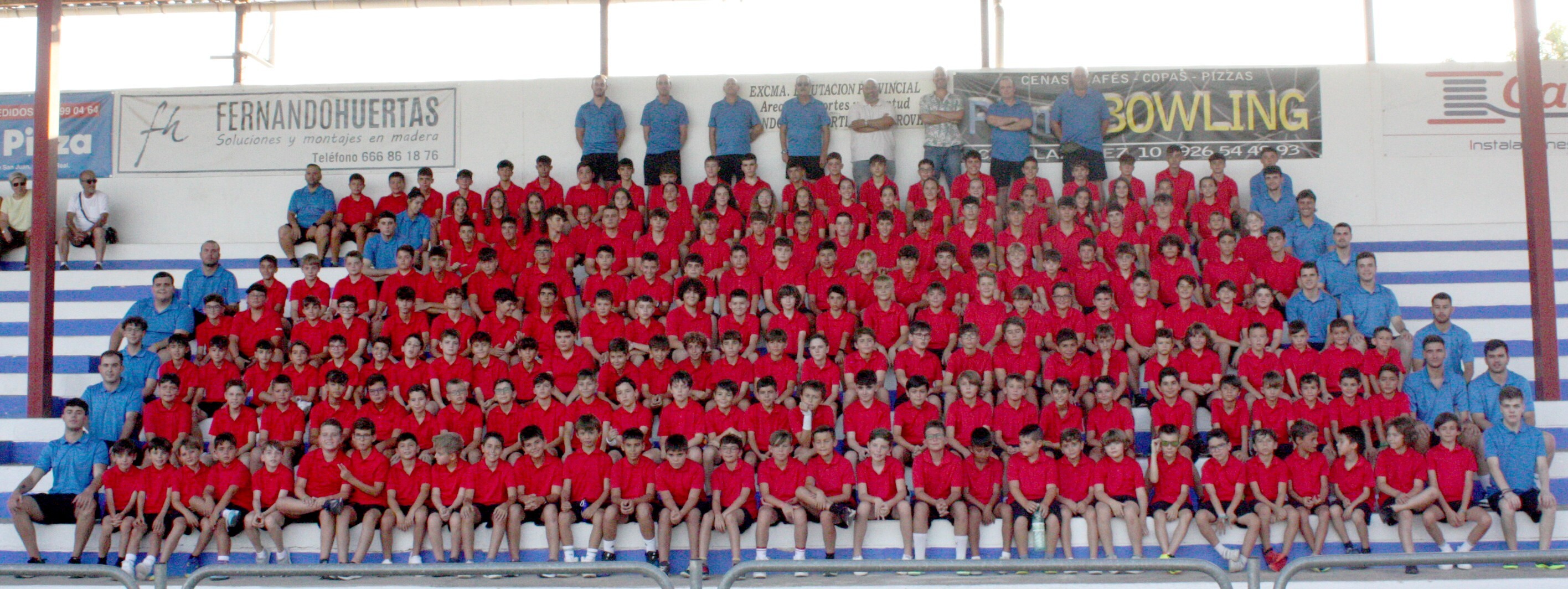 Con altas temperaturas, típicas del mes de julio en la Mancha y muchos padres, madres y familiares resguardados en la sombra de la grada principal, Javier López, speaker del acto, fue llamando a los grupos y monitores que participarán en este Campus, quienes una vez que saltaron al campo, ocuparon su ubicación, dispuesta por la organización, hicieron la foto de grupo para el recuerdo y posteriormente se hicieron la multitudinaria foto en la grada, en recuerdo de este XVIII edición que comienza este lunes.