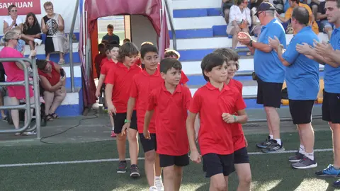 Con altas temperaturas, típicas del mes de julio en la Mancha y muchos padres, madres y familiares resguardados en la sombra de la grada principal, Javier López, speaker del acto, fue llamando a los grupos y monitores que participarán en este Campus, quienes una vez que saltaron al campo, ocuparon su ubicación, dispuesta por la organización, hicieron la foto de grupo para el recuerdo y posteriormente se hicieron la multitudinaria foto en la grada, en recuerdo de este XVIII edición que comienza este lunes.