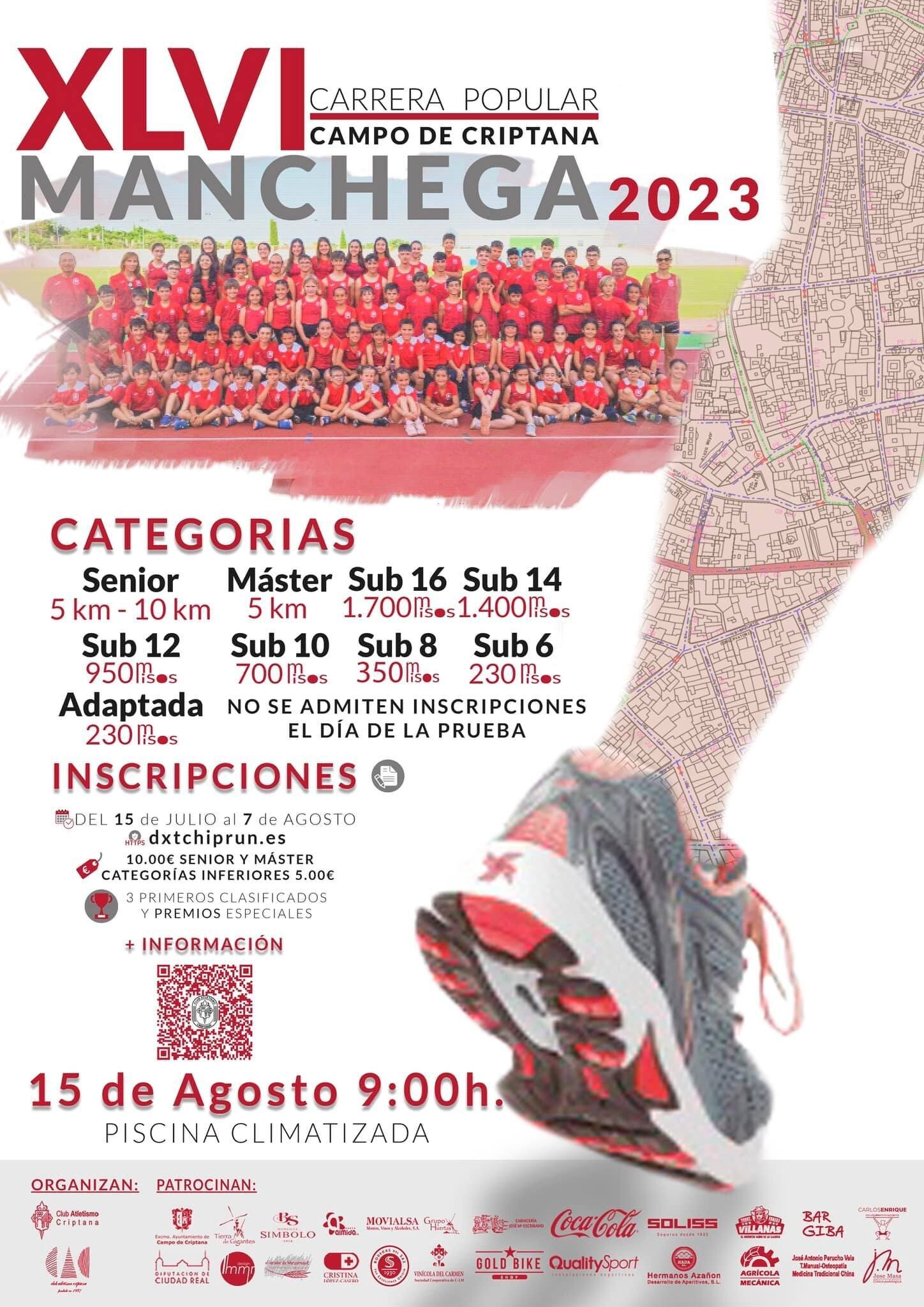 Además de premios para los 3 primeros clasificados, este año también habrá premios especiales. Está organizada por el Club Atletismo Criptana (CAC) con la colaboración del Ayuntamiento de la localidad. Este año celebramos la 46ª edición, lo que nos convierte en la carrera popular con más historia de la región. La prueba comenzará a las 9 de la mañana del martes 15 de agosto de 2023.