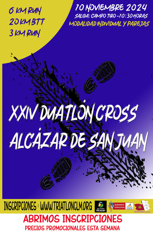 La fecha máxima será el 7 de noviembre. La web para inscribirse y recibir más información es https://www.rockthesport.com/es/evento/xxiv-duatlon-cross-alcazar-de-san-juan-24