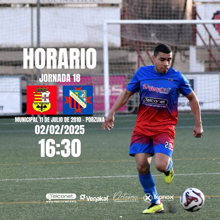 Este domingo 2 de febrero, a las 16:30 horas en el Municipal 11 de Julio de 2010 de Porzuna, se disputará el partido de fútbol de la Jornada 18 de la Primera Autonómica, entre los equipos CDB CF Porzuna y Alcázar CFD, ambos conjuntos encuadrados en el grupo 2 de la citada categoría. El partido será dirigido por el colegiado Youssef El Alami.