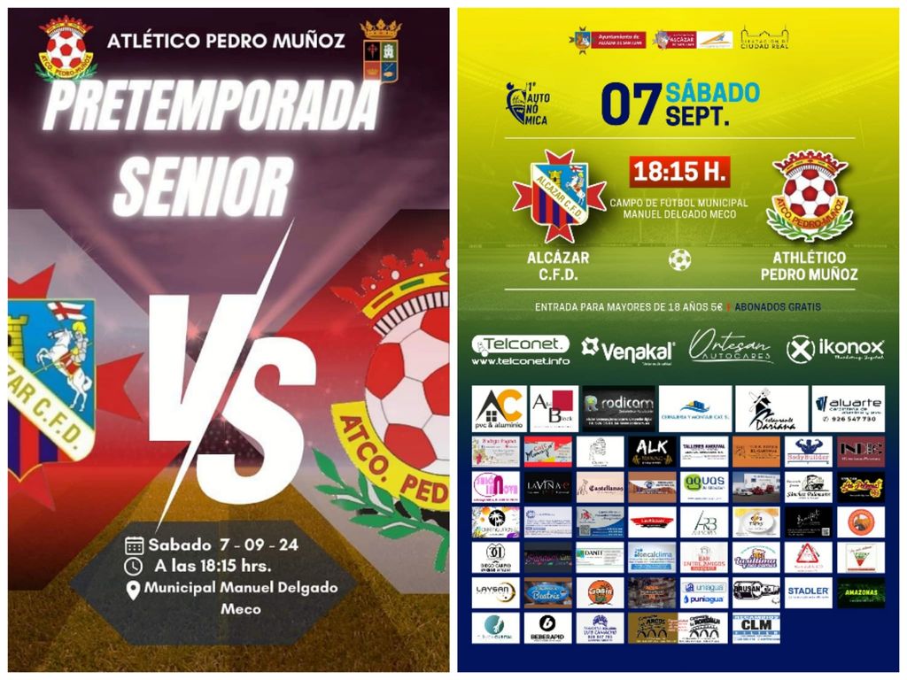 Este próximo sábado 7 de septiembre a partir de las 18:15 horas en el Municipal Manuel Delgado Meco de Alcázar de San Juan, y con arbitraje de Adrián Ruiz Martínez-Alcocer que estará asistido por Javier Muñoz García Miguel y Carlos Jiménez de la Coca Sánchez-Mateos, el ALCÁZAR C. F. D. disputará un partido de fútbol frente al Atlético Pedro Muñoz correspondiente al Trofeo de Ferias.