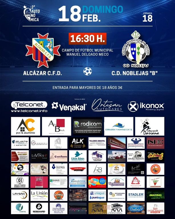 El Alcázar CFD retoma la competición oficial de liga en el grupo 3 de la Segunda División Autonómica Masculina, recibiendo este próximo domingo a partir de las 16:30 horas en el municipal “Manuel Delgado Meco” con arbitraje de Alberto Moreno Palomino, al CD Noblejas “B”.