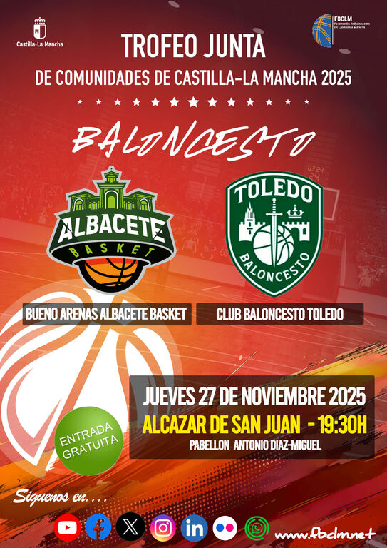 El mítico e histórico pabellón Antonio Díaz-Miguel de Alcázar de San Juan volverá a albergar un evento de baloncesto de gran nivel el próximo jueves 27 de noviembre. La Federación de Baloncesto de Castilla-La Mancha ha designado a esta ciudad manchega como sede donde se disputará la final del Trofeo Junta de Comunidades de Castilla-La Mancha de baloncesto masculino.