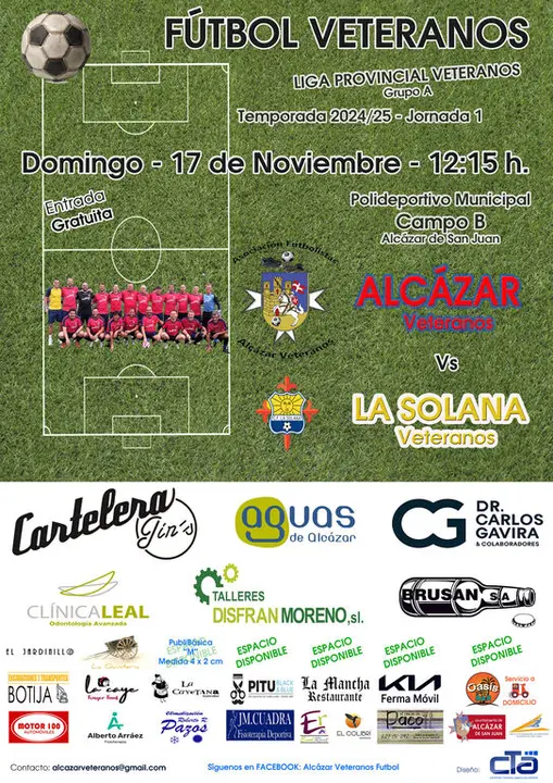 El equipo alcazareño, disputará su partido correspondiente a la jornada 1 de esta competición, recibiendo a La Solana Veteranos, este próximo Domingo 17 de noviembre a las 12.15 h. en el Complejo Polideportivo Municipal Campo B de Alcázar de San Juan, al cual invitan a todo aquel aficionado y simpatizando al fútbol.
