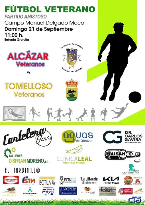 Este próximo domingo, el municipal “Manuel Delgado Meco”, albergará un encuentro amistoso de fútbol veterano, entre el Alcázar Veteranos y el CD Tomelloso Veteranos. Será a partir de las 11:00 horas en el municipal “Manuel Delgado Meco”.