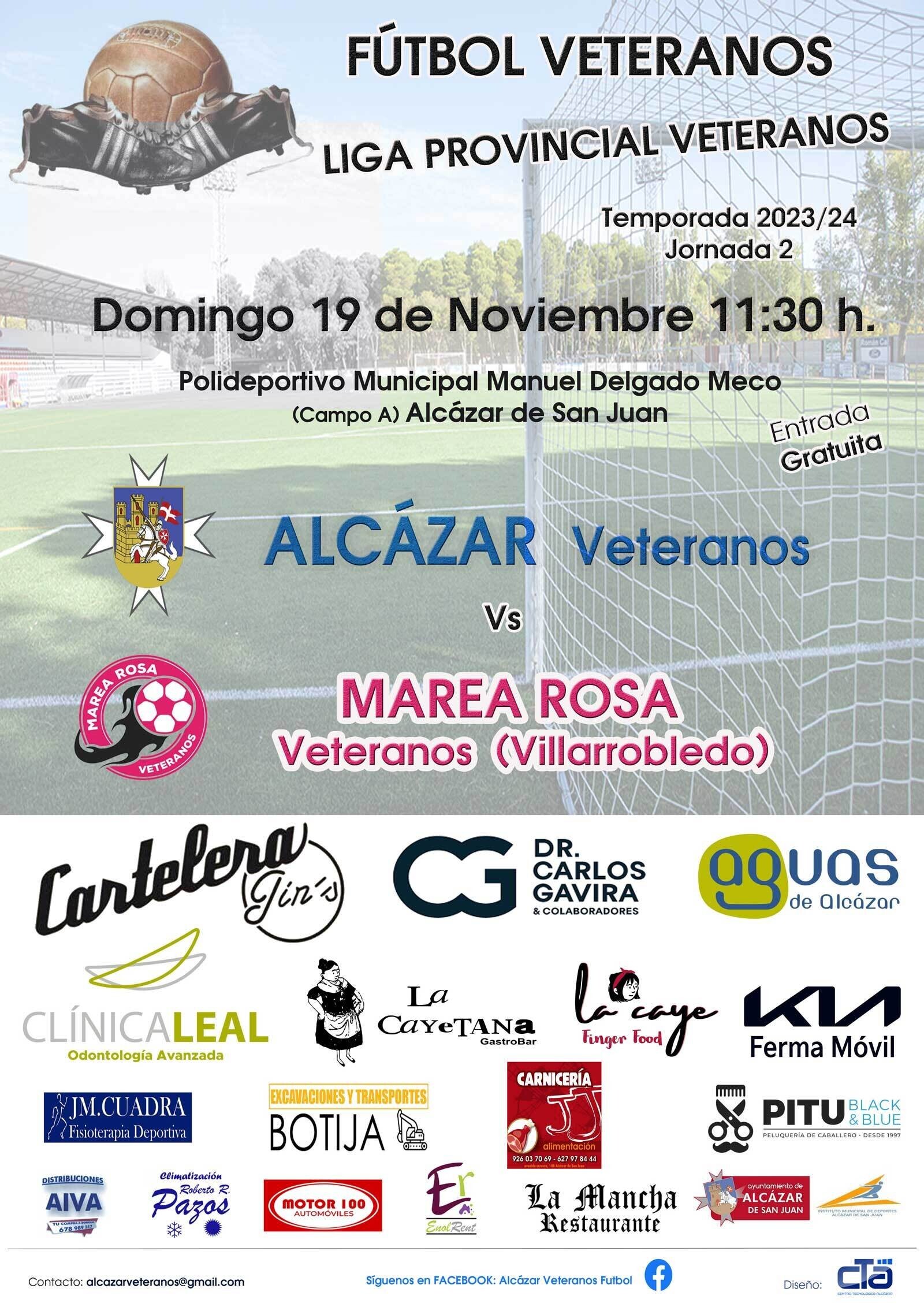 El Alcázar Veteranos vuelve a la carga, y el Manuel Delgado Meco acoge, el partido correspondiente a la 2ª jornada de la liga provincial de fútbol veteranos, Grupo A. Los alcazareños, se medirán al Marea Rosa de Villarrobledo, este próximo domingo 19 de Noviembre a las 11.30 horas., con entrada gratuita.