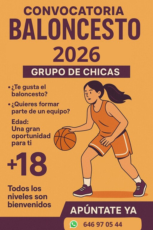 Desde el Ayuntamiento se anima a todas las interesadas a sumarse a esta propuesta, tanto si desean probar el baloncesto por primera vez como si ya cuentan con experiencia previa y quieren seguir practicándolo en un entorno cercano y dinámico.