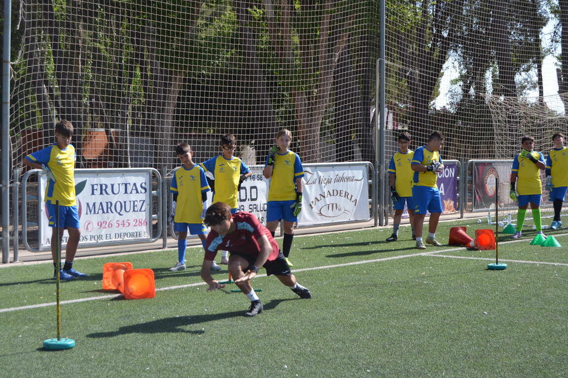 El Campus de Porteros de Alcázar de San Juan ha alcanzado este verano su décima edición, con un total de 25 participantes —24 chicos y una portera— que disfrutan de una semana intensiva de entrenamientos técnicos, juegos y convivencia. La actividad está organizada por el Racing de Alcázar, con la dirección de José Antonio Castellanos y la colaboración del Instituto Municipal de Deportes.