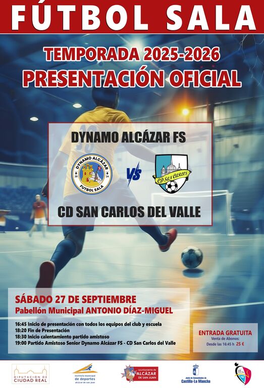 Este sábado, 27 de septiembre, a partir de las 17:00 horas en el Pabellón Antonio Díaz-Miguel, el Club Deportivo Escuela Dynamo Alcázar Fútbol-Sala realizará su presentación oficial para la temporada 2025-2026.