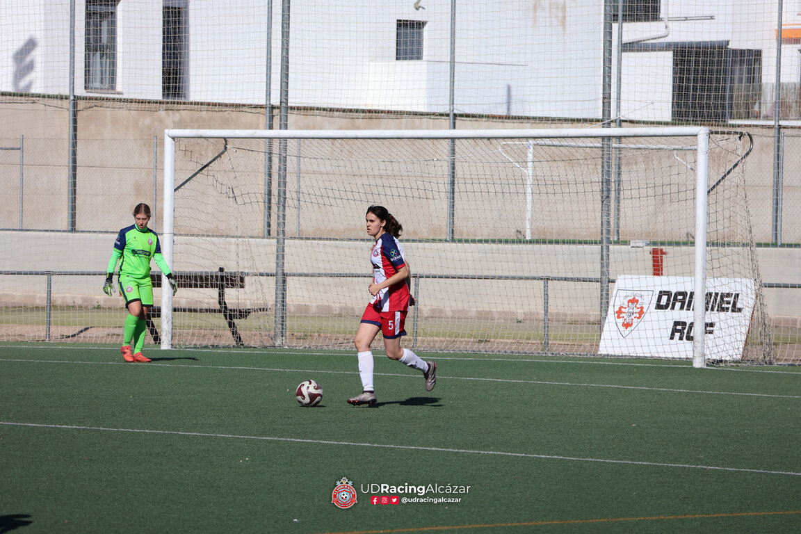 Se desplazaban las alcazareñas a Daimiel, en un choque donde a pesar de enfrentarse a las colistas, sabían que las locales no se lo pondrían nada fácil. En la primera mitad pudimos ver un único dominador del encuentro, un Racing que lo intentó en numerosas ocasiones, pero la mala suerte de cara a portería y los múltiples fuera de juego hacían que no consiguiesen romper la igualdad. No sería hasta el minuto 39 cuando tras un magistral golpeo en largo de Bea, sería Paula Verdugo quien conseguiría adelantar a las visitantes. Una mínima ventaja con la que se llegaría al descanso.