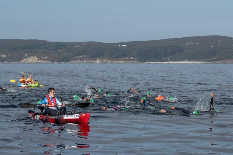 Un total de 115 nadadores disputaron la tercera prueba de la Triple Corona Illas Atlánticas. La travesía tiene salida desde la playa de Area dos Cans, en la isla de Ons, y se adentra 23 kilómetros en la ría de Pontevedra, hasta la meta ubicada en la plaza da Chousa, en Combarro.
