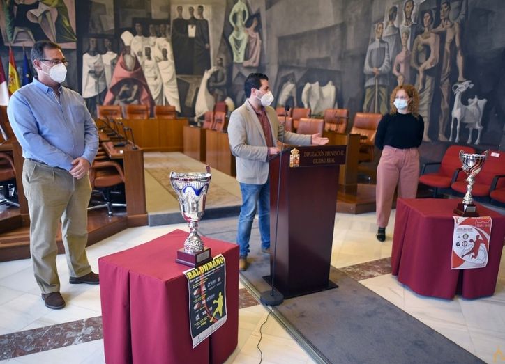 El vicepresidente cuarto encargado del Área de Deportes, David Triguero, ha presentado este trofeo en el Salón de Plenos del Palacio provincial acompañado de la presidenta de la Federación de Balonmano de Castilla-La Mancha, María López y del delegado en Ciudad Real, Fernando García.
