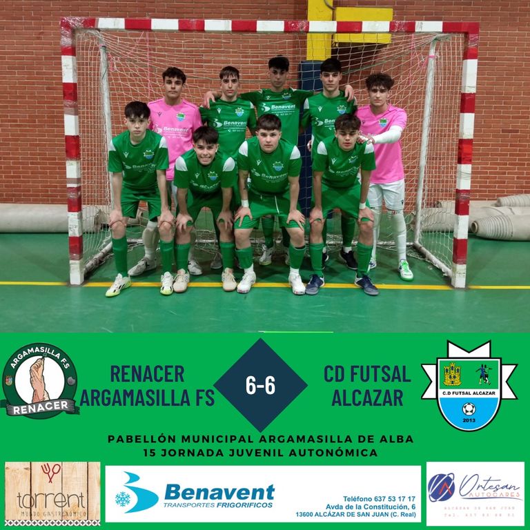 Pero aun, el juvenil del Renacer Argamasilla, conseguiría a falta de 1 min, marcar su sexto gol con el que empató a seis el partido, repartiéndose ambos equipos un punto, de un partido loco.