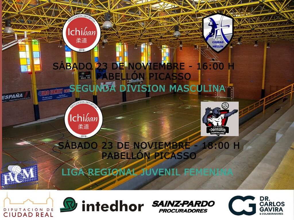 El Club Voleibol Ichiban Alcázar regresa al Pabellón Pablo Ruiz Picasso de Alcázar de San Juan, este sábado, con doble partido de liga. A partir de las 16:00 horas, el equipo de Segunda División Masculina recibirá al Club Voleibol Ciudad Hellín, uno de los equipos más fuertes de la categoría, y actual líder de la categoría, donde los alcazareños, lucharán para sacar un buen resultado.
