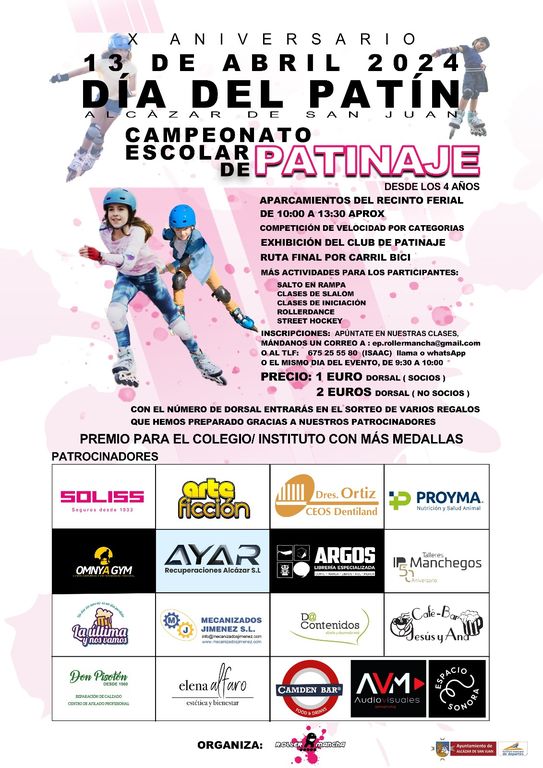 Este sábado día 13 de abril. De 9.30 a 13.30, la Escuela de Patinaje y club Roller Mancha, celebrará su Día del patín, y X Aniversario de la creación del club. El lugar será los aparcamientos del recinto ferial de Alcázar de San Juan. El evento constará de varias actividades para toda la familia: