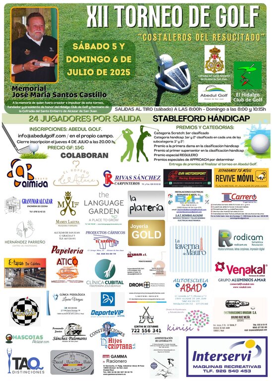 Todo a punto para que este fin de semana se celebre la duodécima edición del Torneo de Golf “Costaleros del Resucitado” Memorial José María Santos Castillo, creador e impulsor de este Torneo, fundador y presidente de honor de El Hidalgo Club de Golf y hermano de la Cofradía del Santo Entierro de Alcázar de San Juan.