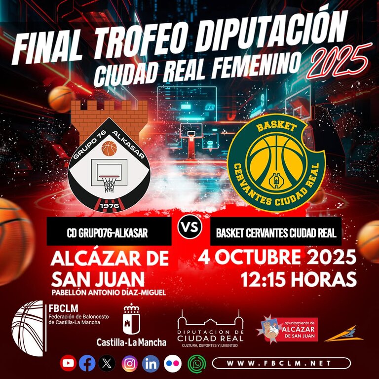 Comienzan los fines de semana de baloncesto cargados de baloncesto en los diferentes pabellones de Alcázar de San Juan. El sábado, la atención informativa, se centra en la final del Trofeo Diputación Provincial de Ciudad Real que se disputará a partir de las 12:15 horas en el pabellón Antonio Díaz-Miguel entre los equipos femeninos del Grupo 76 Alkasar y Basket Cervantes Ciudad Real, y que será arbitrado por José Carvajal González y Cristóbal Jiménez Moya.