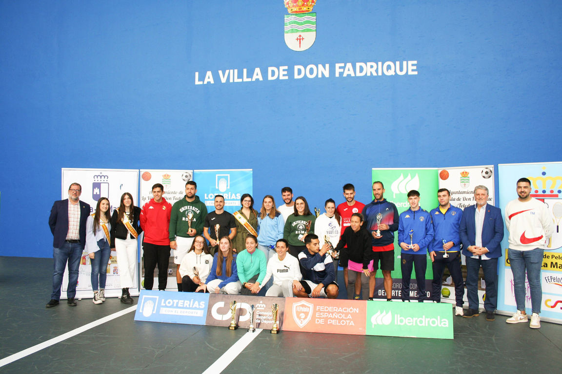 El pasado fin de semana, el remodelado Frontón Municipal de La Villa de don Fadrique acogió la última prueba del Circuito Nacional de Abiertos, de categoría Absoluta masculino y femenino y en la modalidad de Frontenis Olímpico en 30 metros. El Gran Premio de España de Frontenis "La Villa de don Fadrique", arrancó el viernes, 11 de octubre, por la tarde y concluyó cerca de las tres del mediodía del domingo, 13 de octubre, con el acto protocolario de entrega de trofeos en la que estuvieron presentes, entre otros el presidente de la Federación Española de Pelota, Julián García Angulo, el presidente de la Federación de Pelota de Castilla-La Mancha, Félix Manzanero España, el alcalde de la localidad fadriqueña, Jaime Santos Simón, el concejal de Deportes, Luis Palazuelo Díaz-Maroto y la reina de las Fiestas, Cristina Díaz-Maroto Antonesei, junto a la reina de la Juventud, Laura Aparicio Romero y la reina de la Simpatía, Eliana Marín Martínez. Las finales que se jugaron en la matinal del domingo tuvieron un altísimo nivel de frontenis, en el que se impusieron, en chicas, Miriam Aranaz y Mónica Hernández y en chicos Hugo León y Víctor Molina.