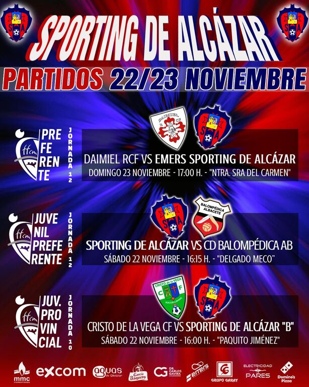 El equipo juvenil preferente del Sporting de Alcázar, séptimo clasificado con 18 puntos, tendrá este sábado a partir de las 16:15 horas en el municipal “Manuel Delgado Meco” un más que exigente partido de liga frente al actual segundo clasificado del grupo 1, el CD Balompédico Albacete Clínica Raga, que suma 24 puntos.