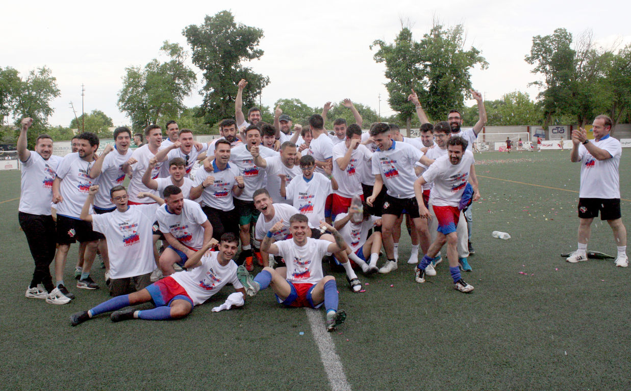 Fiesta sobre el césped del municipal Manuel Delgado Meco para celebrar la gesta alcanzada
