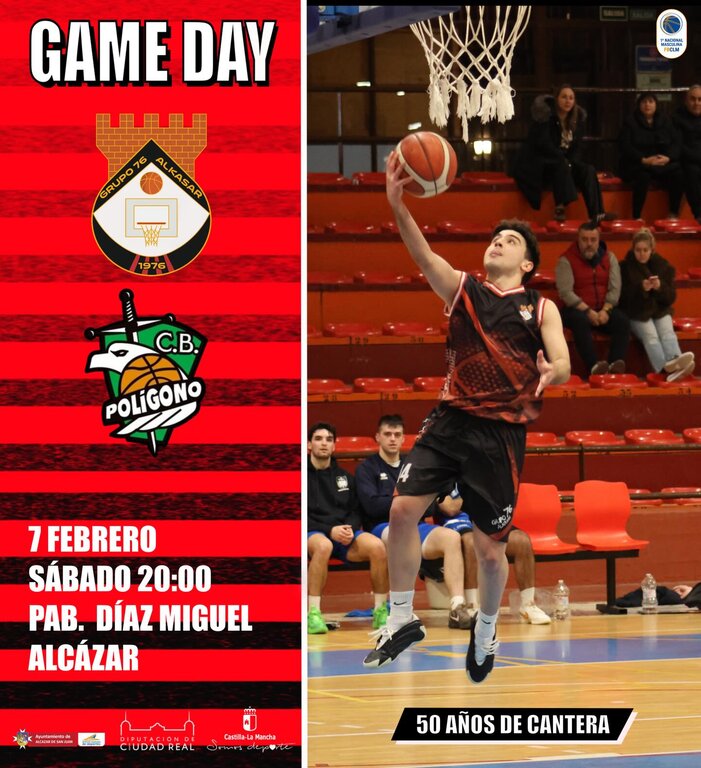 El senior masculino del Grupo 76 Alkasar disputa una nueva jornada liguera en casa, con el objetivo de ofrecer una buena imagen y competir con solidez ante su afición. Los de Jaime Tolosa, quintos clasificados con 6 victorias y 5 derrotas, recibirán este sábado a partir de las 20:00 horas con arbitraje de Gonzalo Abengózar Molina y Carlos Gómez Torrijos al Baloncesto Polígono, séptimo, con 4 victorias y 7 derrotas en partido de la duodécima jornada de liga.