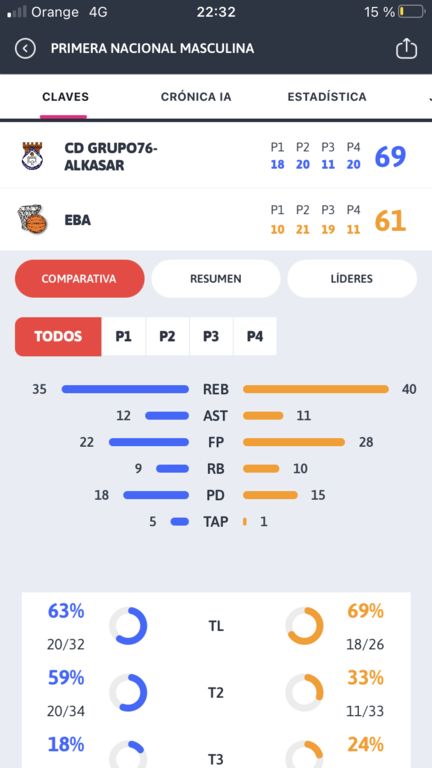 Los alcazareños dieron la campanada y vencieron a un EBA, que encadena su peor racha en las dos últimas temporadas con 3 derrotas consecutivas. El mejor jugador del partido en el Grupo 76 Alkasar fue Sergio Asenjo (Grupo) +21 Valoración, 7 puntos, 9 Rebotes. 3 Asistencias. Destacar también los 18 puntos de Raúl Fernández y los 17 del capitán, Yago Leal.