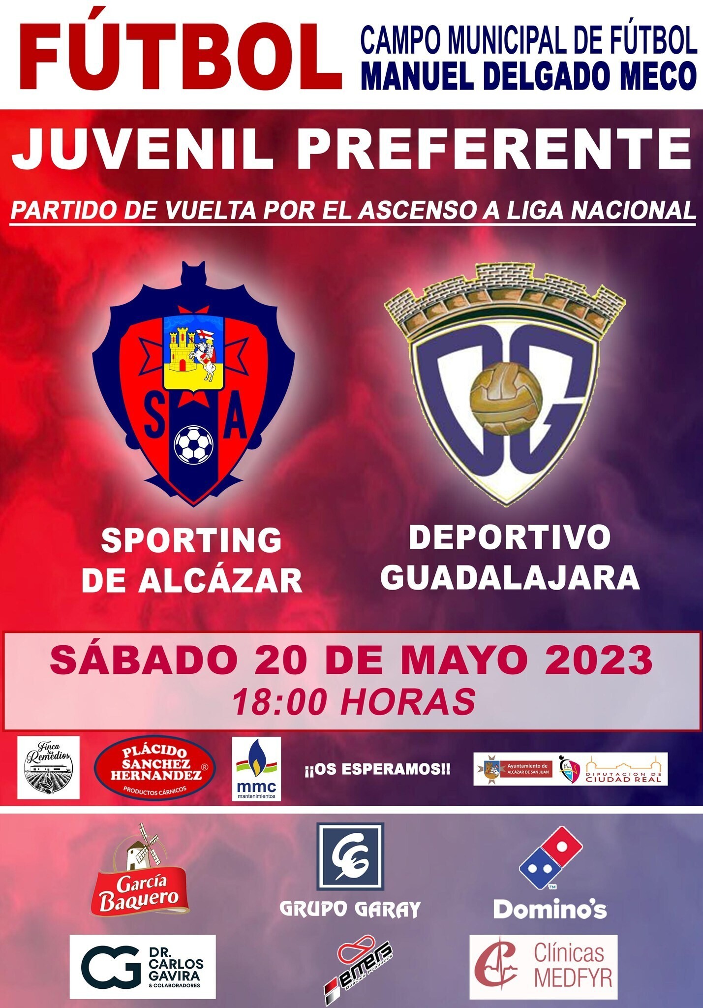 Este sábado se disputará el partido más importante de la presente temporada para el juvenil preferente del Sporting de Alcázar. Será a partir de las 18:00 horas en el Manuel Delgado Meco con arbitraje de Juan L. Martínez-Osaba Escudero que estará asistido en bandas por Carlos Jara Fernández y Brahim Cuiyess Bady, frente al CD Guadalajara.