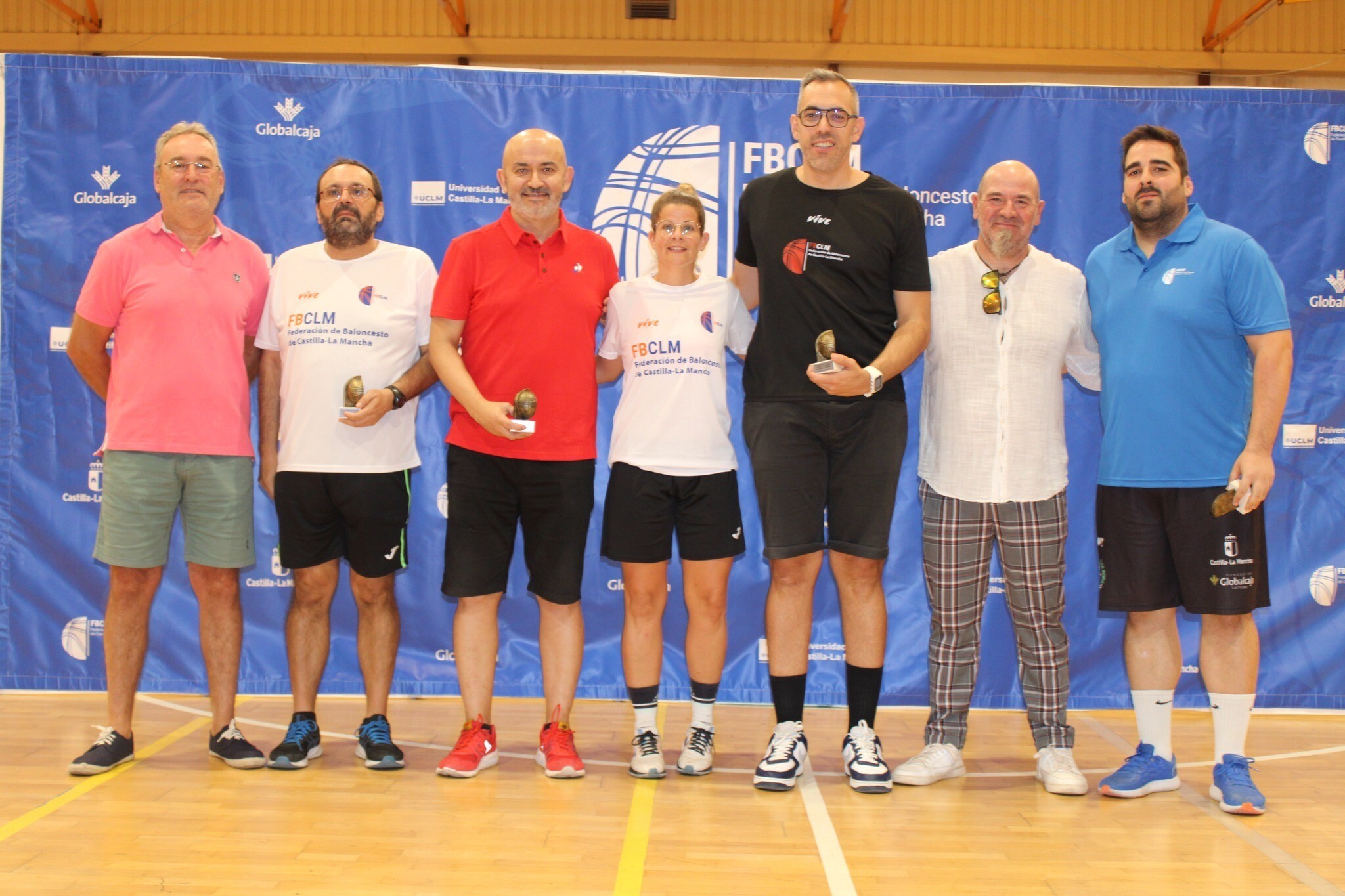 En el intermedio de este II Dia del Entrenador de CLM, los Vicepresidentes de la Federación de Baloncesto de Castill-LA Mancha, Santiago Leal y Alfonso Arráez, entregaron un obsequio conmemorativo a los 5 ponentes, por su participación en esta segunda edición. A la finalización de la jornada, también hubo tiempo para la gran foto de familia con todos los Ponentes, Entrenadores y asistentes a estas jornadas, así como miembros de la FBCLM.