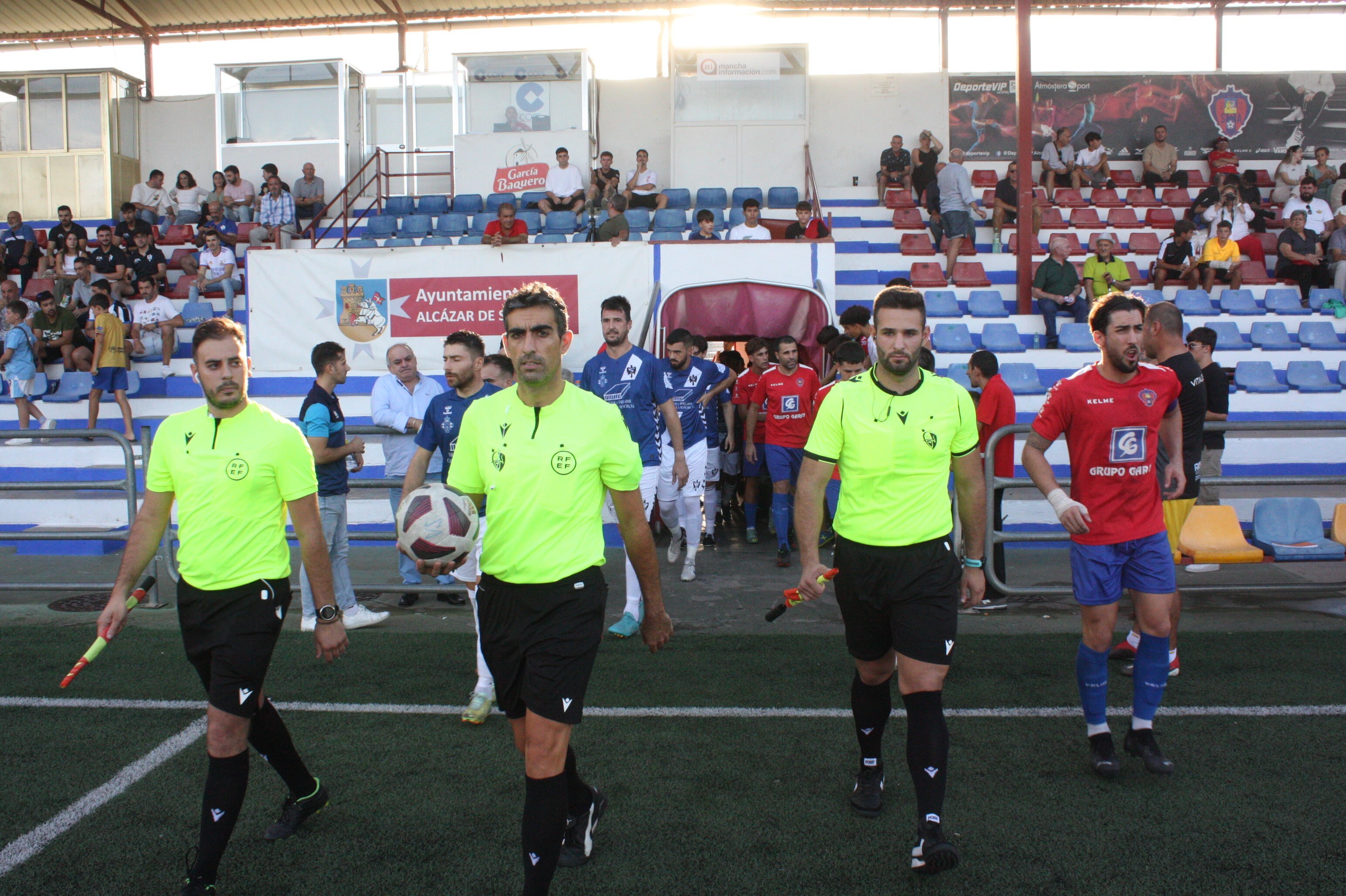 Incidencias.- Encuentro correspondiente a la 1ª jornada del grupo 1 de la primera división autonómica preferente celebrado el domingo desde las 19:00 horas en el municipal "Manuel Delgado Meco" de Alcázar de San Juan. Unos 350 espectadores en las gradas en tarde con tormenta y algo de agua en los minutos previos al calentamiento de los equipos y después nubes y sol picante. Antes del comienzo del partido se guardó un minuto de silencio por las víctimas del terremoto de Marruecos. El final del partido contó con la presencia de 3 parejas de la policía Nacional y Local de Alcázar de San Juan.