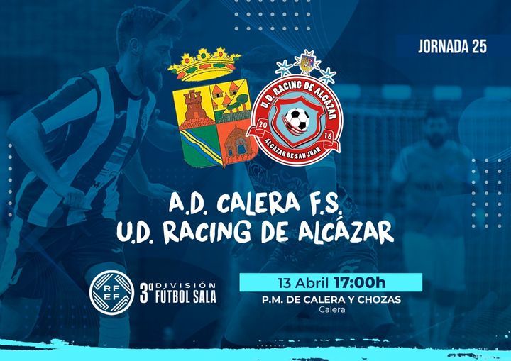 Jornada decisiva y nueva final por la permanencia para el equipo senior de Tercera División Fútbol-Sala del Racing de Alcázar que viaja este sábado hasta la toledana localidad de Calera y Chozas para a partir de las 17:00 horas con arbitraje de Christian Castro Robledo y Agustín García del Pino Gordillo, que estarán asistido por Alejandro López Elez, medirse al AD Calera FS.