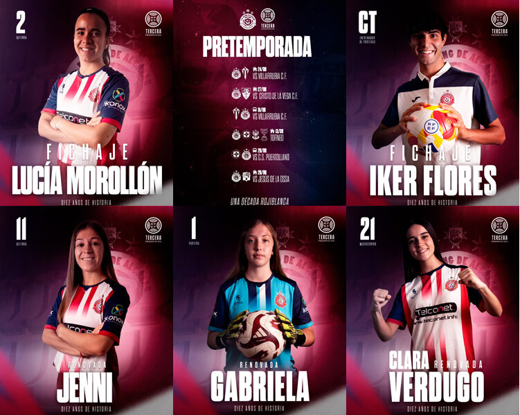 Para estos encuentros amistosos de pretemporada, el Racing de Alcázar tendrá a disposición a sus últimas incorporaciones y renovaciones. Dos fichajes, una jugadora y un técnico y tres jugadoras renovadas. En el apartido de fichajes, destacar a Lucía Morollón que se convierte en nueva jugadora del Racing de Alcázar. La joven defensa alcazareña, tras superar una dificultosa lesión que la mantuvo alejada de los terrenos de juegos la temporada pasada, ha decidido unirse a la familia rojiblanca para volver a hacer lo que más le gusta y recuperar su gran nivel.