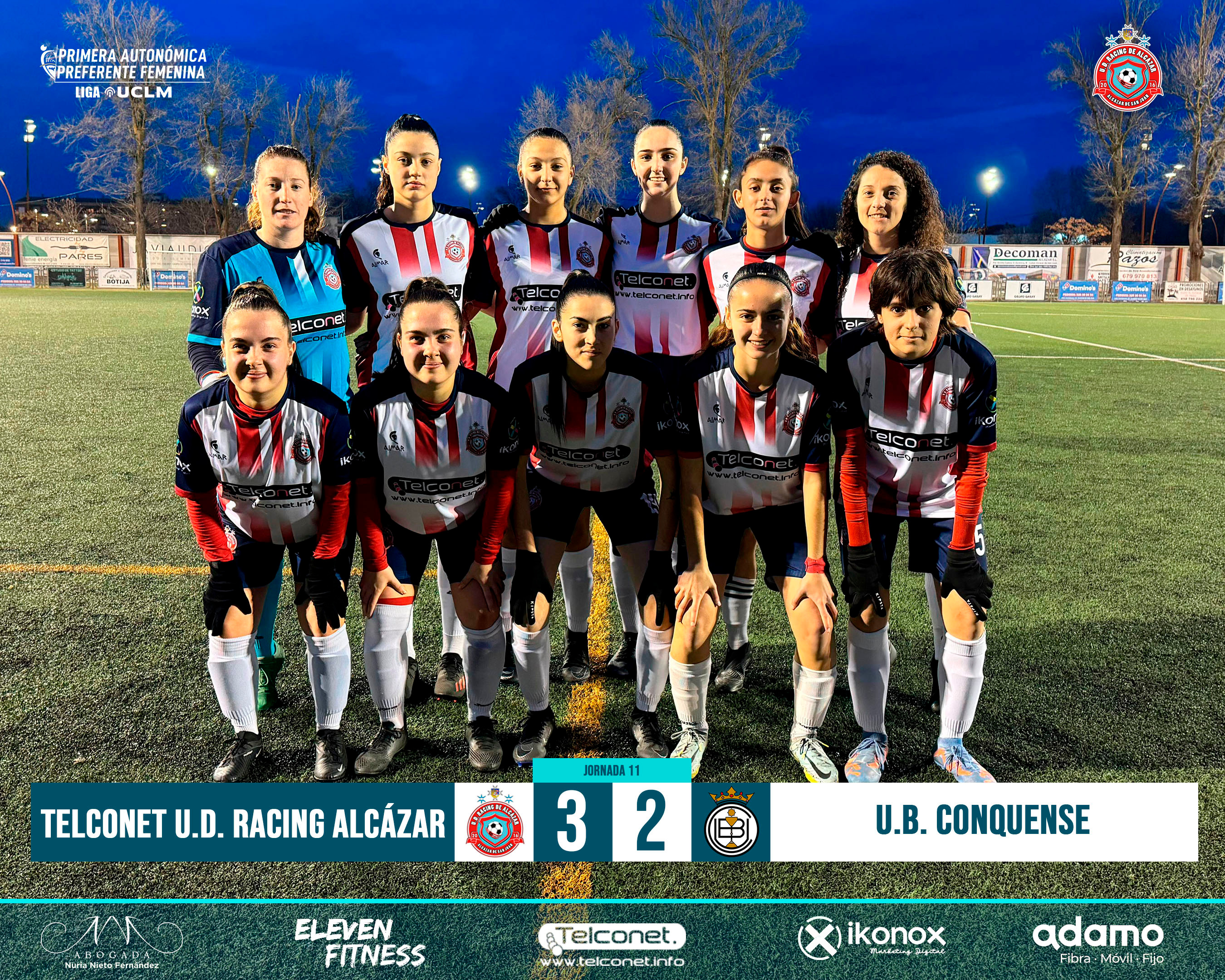 Trabajada y muy sufrida victoria tras remontar un 0-2 en contra de las chicas del Racing de Alcázar en su primer partido del año en casa frente a la UB Conquense. Las rojiblancas, que dominaron la mayor parte del encuentro, remontaron un 0-2 en los últimos 15 minutos y consiguen la primera victoria del año.